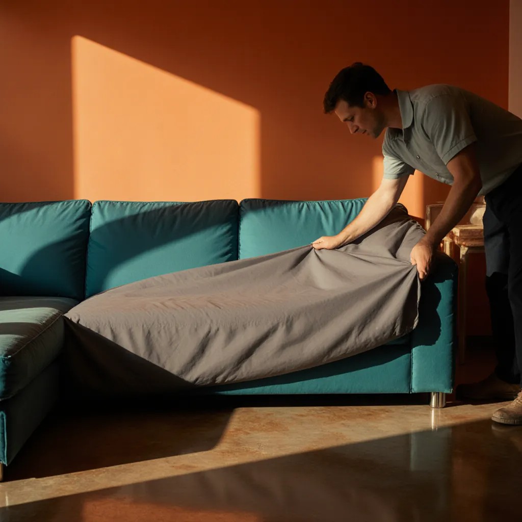 Wir verwenden passgenaue Schutzbezüge, damit Sofas & Sessel sicher bleiben und Oberflächen vor Abrieb und Kratzern geschützt sind.